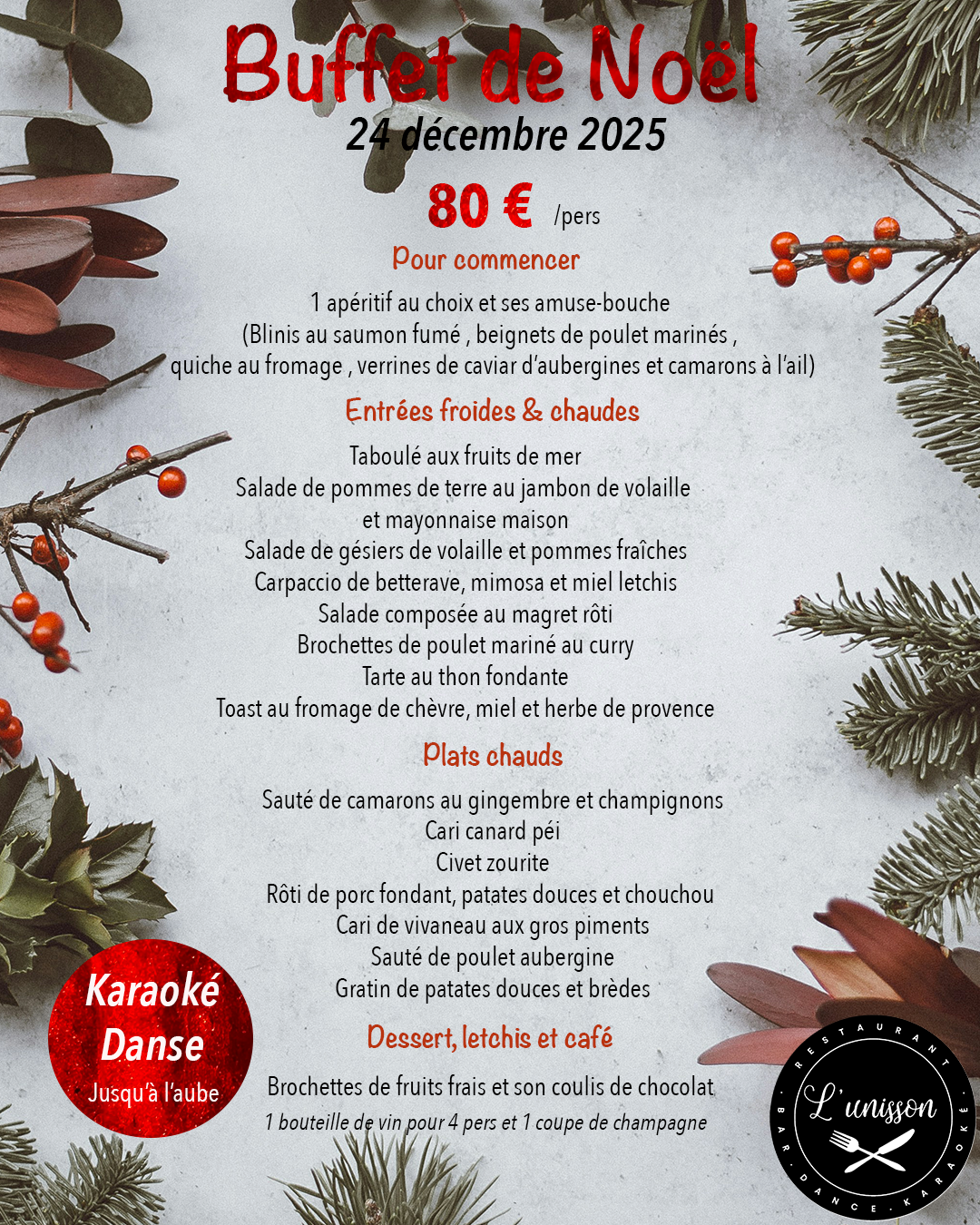 Les soirées sont l'occasion de voyager à travers les saveurs du monde, et notre salle peut être privatisée pour vos événements. Aussi, quelle que soit l’occasion, choisissez le restaurant L'Unisson.